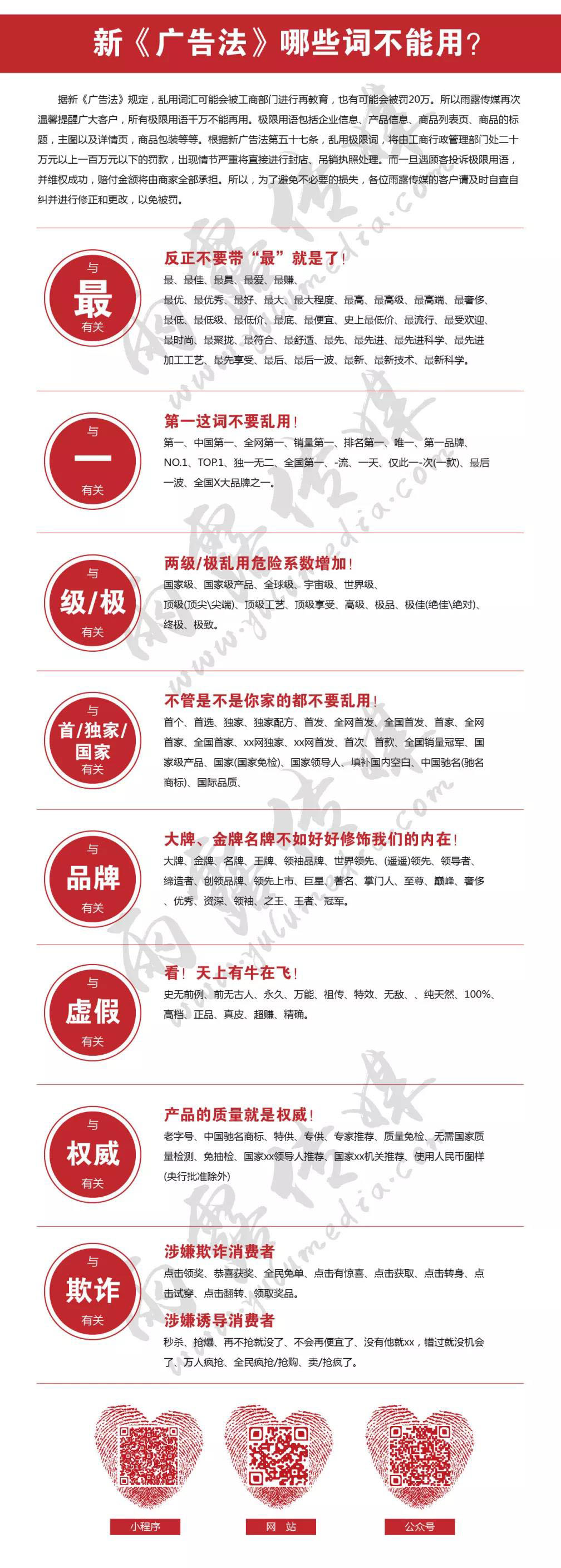 名稱雨露傳媒告知各位客戶新《廣告法》哪些詞不能用? 2019-12-19 08:57:12